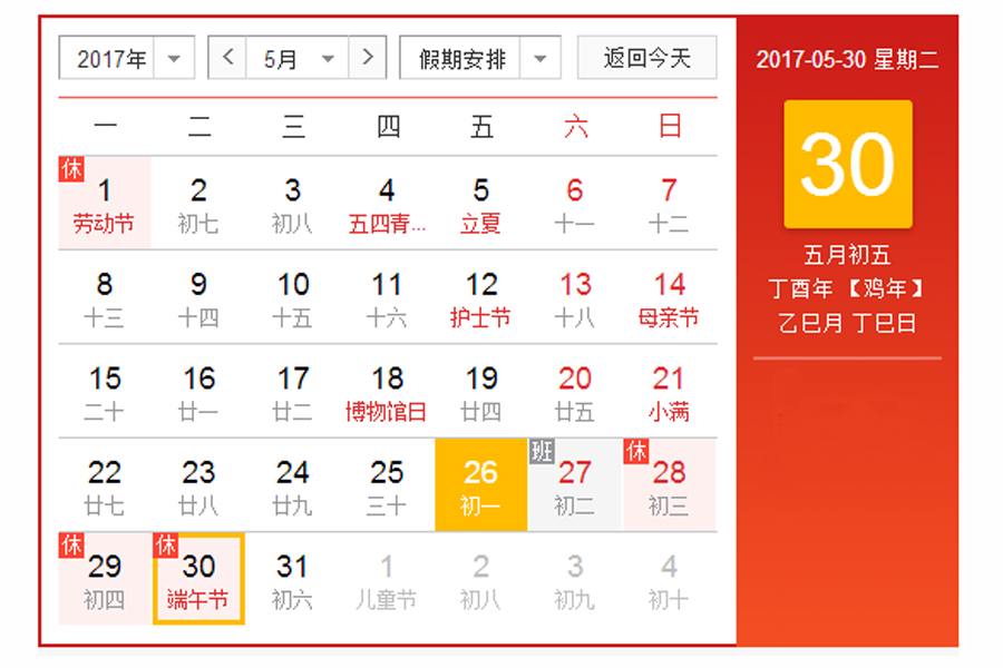 端午節即將來臨,端午節是我國最大的傳統節日之一。根據國務院辦公廳有關文件精神,2017年端午節放假時間安排如下: