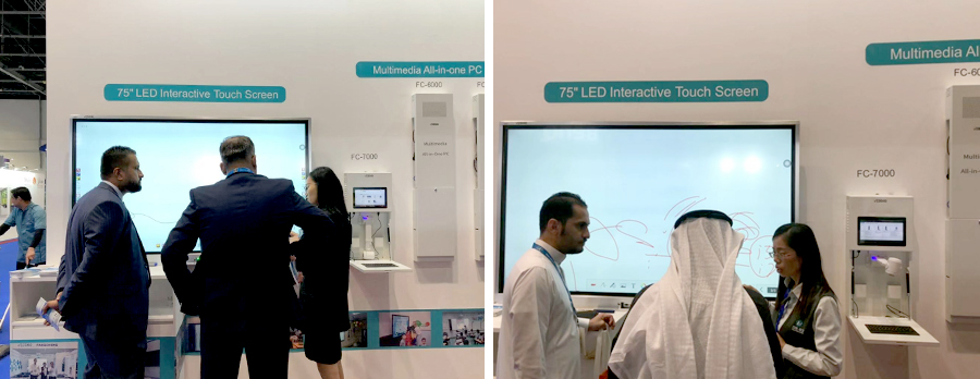 于教育技術(shù)的展會(huì)。2019年2月26日至28日,在迪拜世界貿(mào)易中心方成教學(xué)攜最新款液晶一體機(jī)亮相     。此款液晶一體機(jī)以新穎的銀色超