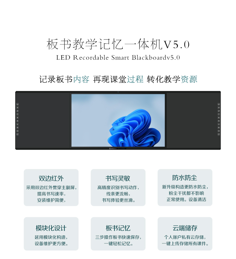 互聯(lián)黑板-記錄板書內(nèi)容、再現(xiàn)課堂過程、轉(zhuǎn)化教學資源,板書教學記憶一體機集六大產(chǎn)品于一機,在不改變老師板書習慣的前提下,實現(xiàn)傳統(tǒng)教學與多媒體設(shè)備的智慧融合,設(shè)定了有板書記憶、板書同步顯示、板書自動分享等多樣化功能,每一個功能的實現(xiàn)都賦予了自己的使命。