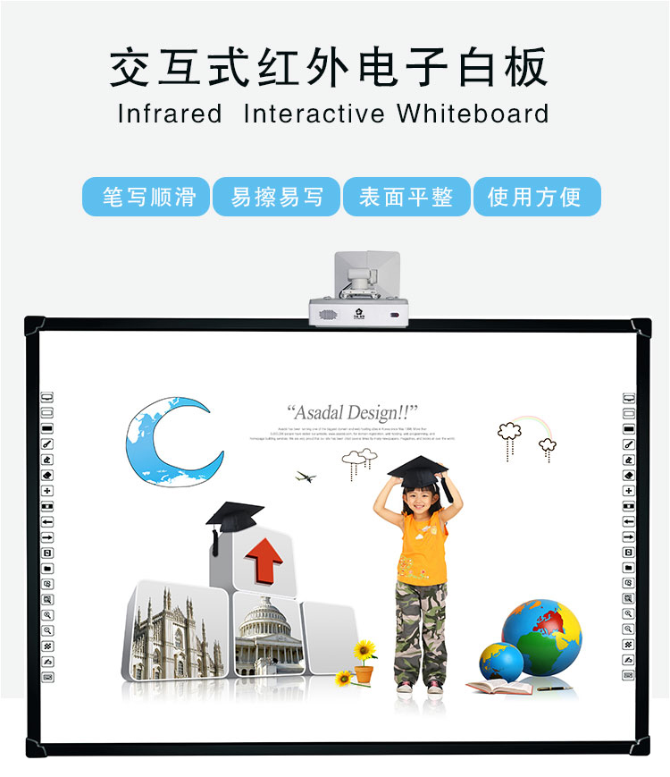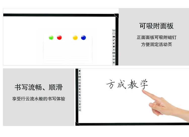 紅外電子白板是搭配多媒體一體機和投影機同步使用,納米面板折射光源保護視力