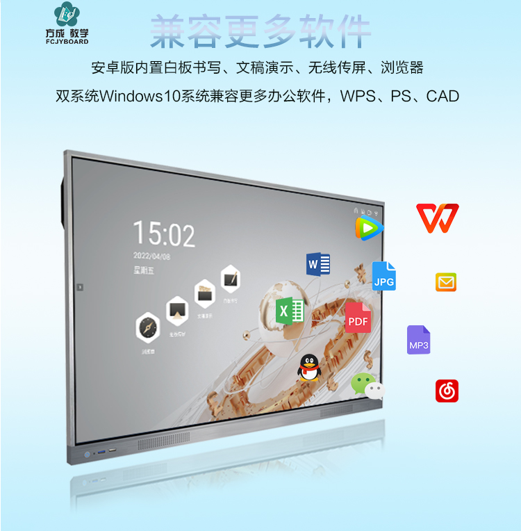 智能會議平板-超窄邊框三等邊超窄邊框設計,推拉門鎖保護,4K超高清顯示,以人機交互的方式,搭載互動白板和無線投屏軟件,實現多人書寫、互聯互通的互動教學模式,豐富課堂內容,提高學習氛圍。